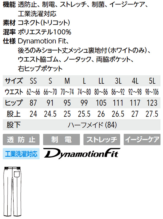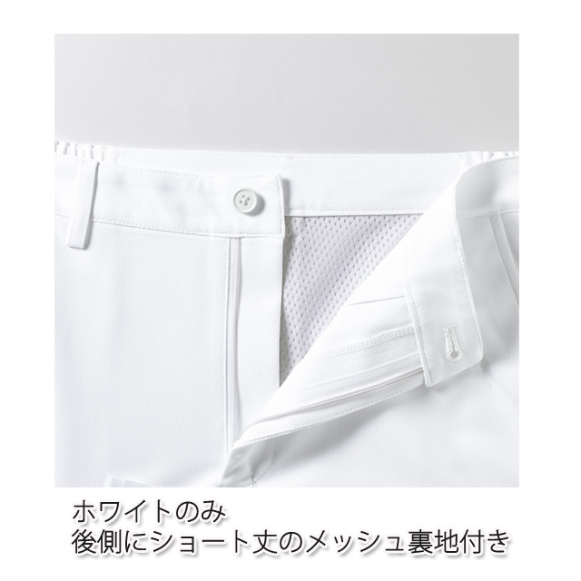 ●特徴:Dynamotion Fit(ダイナモーションフィット)、後ろのみショート丈メッシュ裏地付き(ホワイトのみ)、ウエスト脇ゴム、ノータック、両脇ポケット、右ヒップポケット