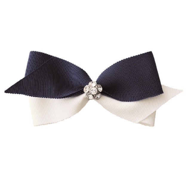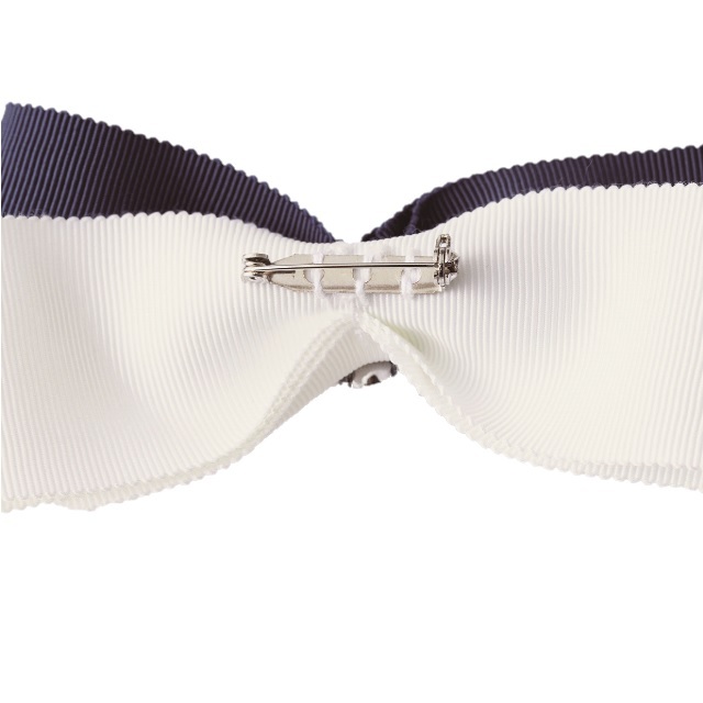 ネイビー×ホワイトの安全ピンタイプのリボンブローチです。