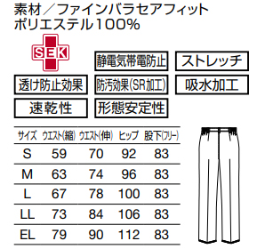 ●機能:制菌加工 静電気帯電防止 ストレッチ 透け防止効果 防汚効果(SR加工) 吸水加工 速乾性 形態安定性