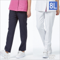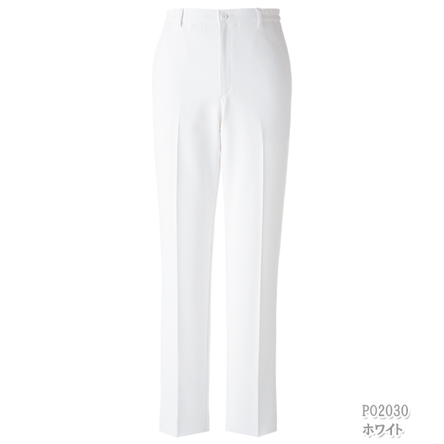 ウエストやヒップにはほどよいゆとりがあり、裾を細くすることで視覚的にほっそり見せるデザイン。