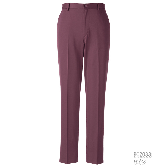 ウエストやヒップにはほどよいゆとりがあり、裾を細くすることで視覚的にほっそり見せるデザイン。