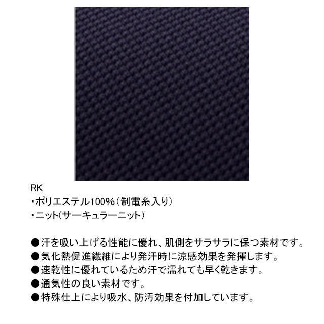 通気性に優れ、接触冷感効果もある涼感素材により、衣服内温度が一定に保たれ、快適に着用できます。右脇には鍵やストラップコードなどを掛けられるWループ仕様になっています。