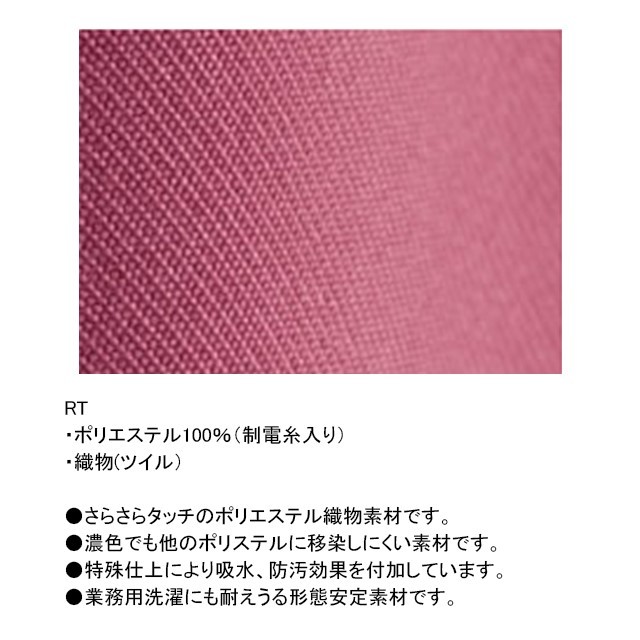 ●素材:RT ポリエステル100%(色移りしにくい、吸水、防汚、業務用洗濯可、形態安定素材、制菌加工)