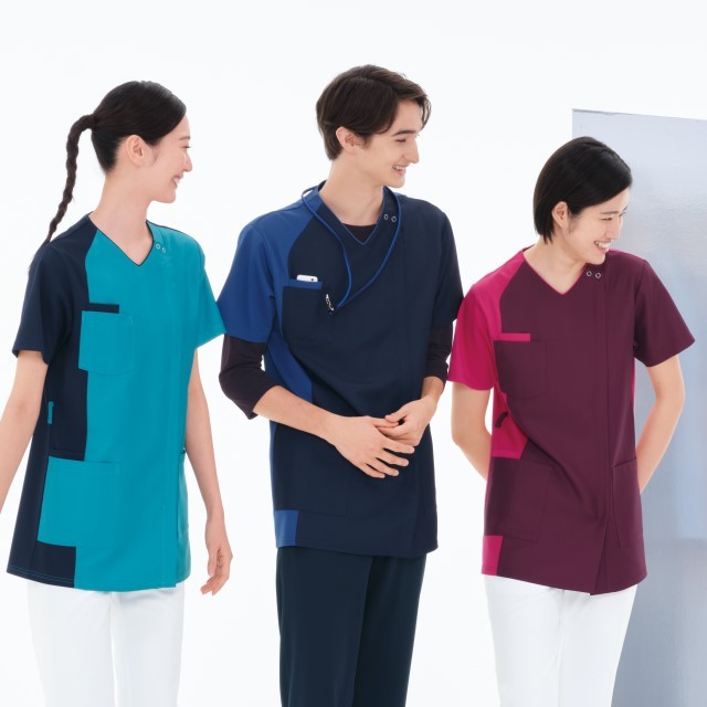 アシンメトリーなデザインが新鮮で自由なイメージのスクラブです。