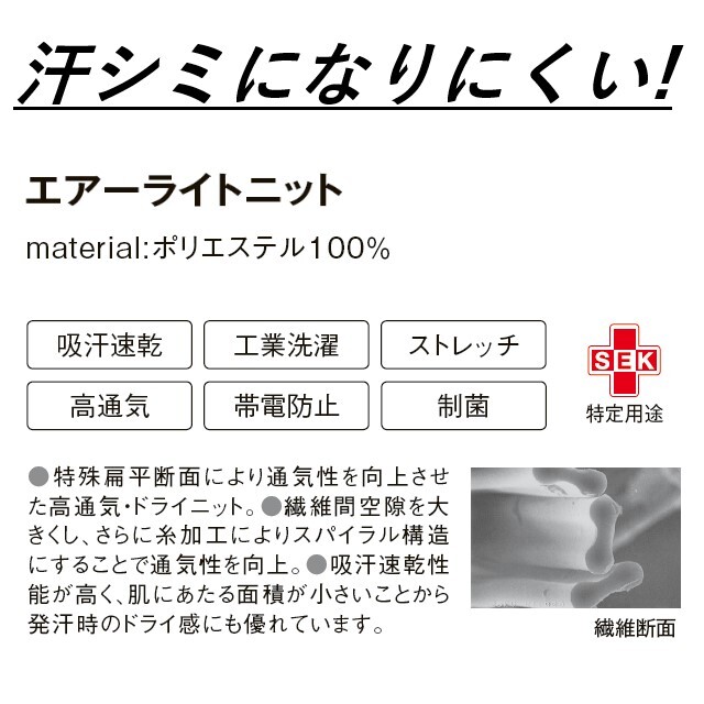 ●機能:吸汗速乾 工業洗濯 高通気 ストレッチ 帯電防止 制菌