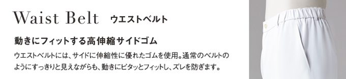 医療現場のハードな動きに対応した、ストレッチ性の高いストレートタイプのパンツです。
