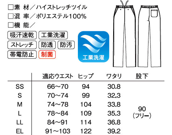 ●機能:吸汗速乾 工業洗濯 ストレッチ 帯電防止 制菌 防汚 防透