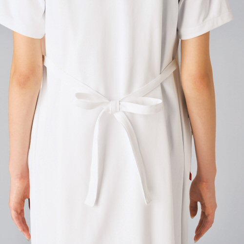 シルエットを調節できるやさしい着心地のワンピース。ウエスト周りは、ひもベルトで調節が可能です。
