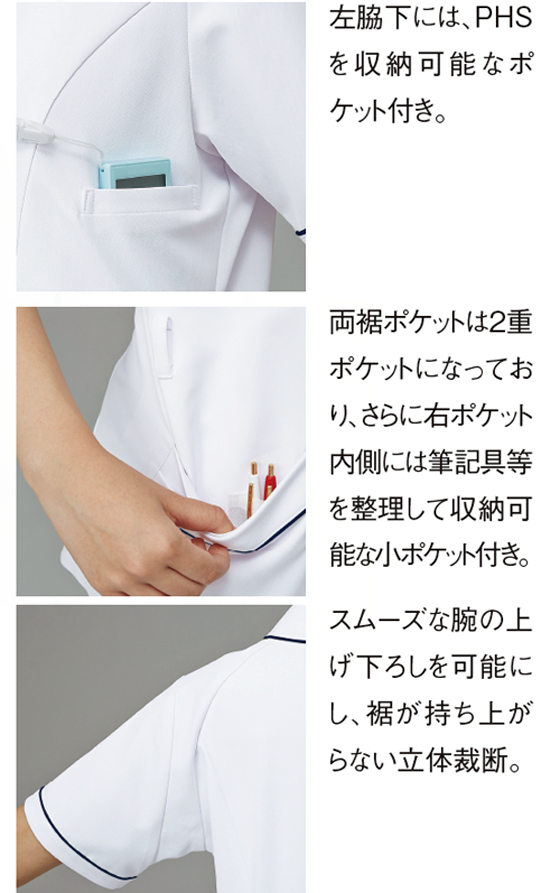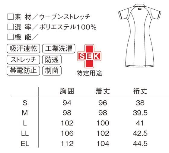 ●機能:吸汗速乾 工業洗濯 ストレッチ 防透 帯電防止 制菌