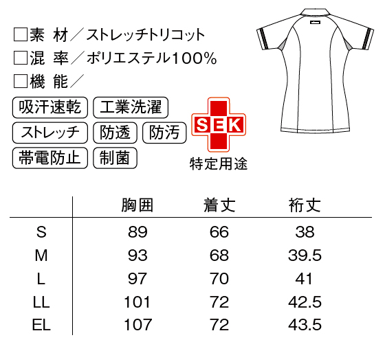 ●機能:吸汗速乾 工業洗濯 ストレッチ 防透 防汚 帯電防止 制菌