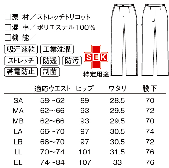 ●機能:吸汗速乾 工業洗濯 ストレッチ 防透 防汚 帯電防止 制菌