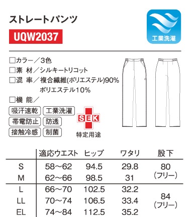 医療現場のハードな動きに対応した、ストレッチ性の高いストレートタイプのパンツです。