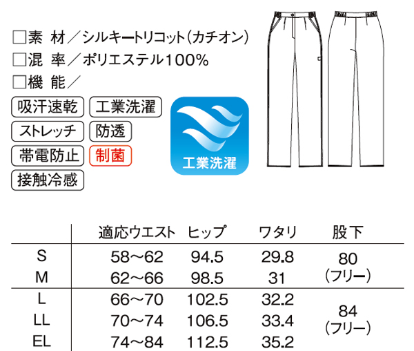 ●機能:吸汗速乾 接触冷感 工業洗濯 ストレッチ 防透 帯電防止 制菌