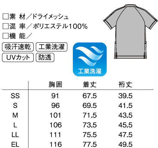 ●機能:吸汗速乾 工業洗濯 UVカット 防透