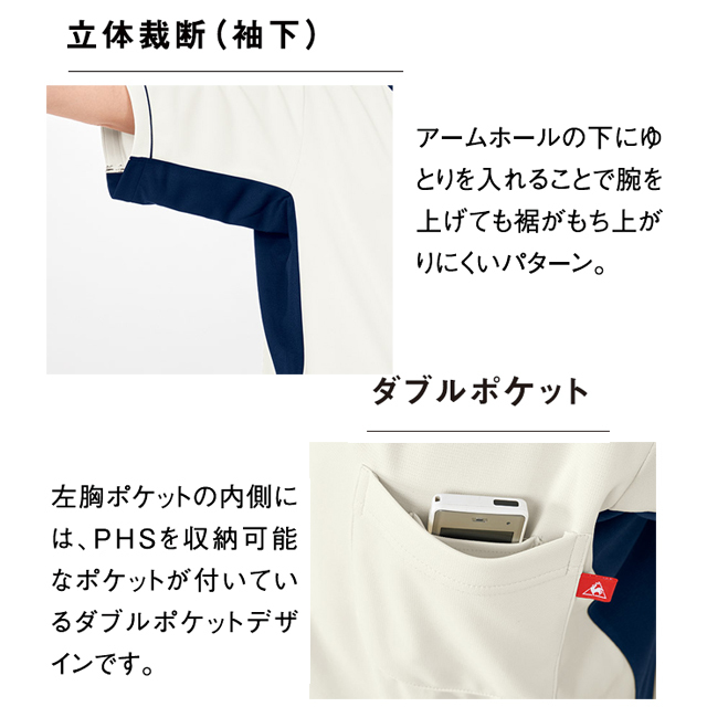 左胸ポケットの内側には、PHSを収納可能なポケットが付いているダブルポケットデザインです。
