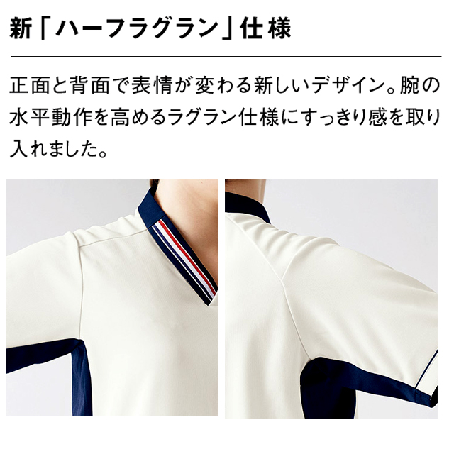 正面と背面で表情が変わる新しいデザイン。腕の水平動作を高めるラグラン仕様にすっきり感を取り入れました。