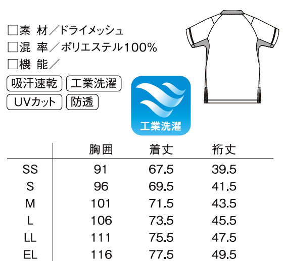 ●機能:吸汗速乾 工業洗濯 UVカット 防透