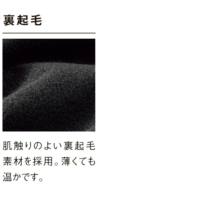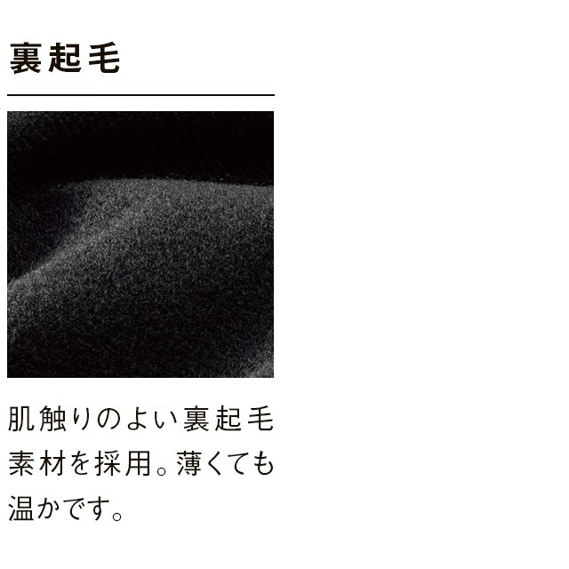 裏起毛素材で保温性を確保し、エアコンによる冷え対策などの、