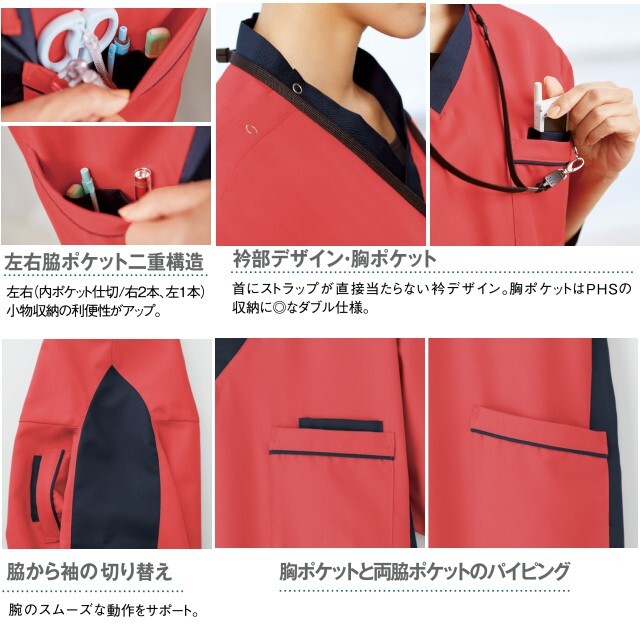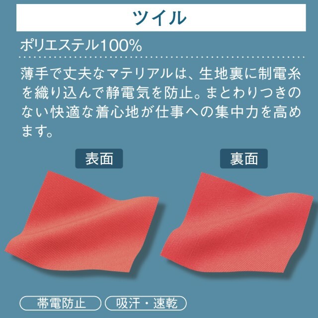 ●機能:帯電防止/吸汗速乾/抗菌/消臭/小物用二重ポケット/工業洗濯対応