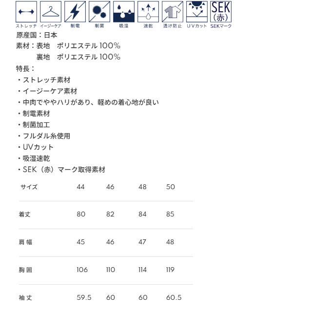 素材は制電素材、制菌加工等が施された、SEK(赤)マーク付きの医療用高機能ストレッチ性イージーケア生地です。