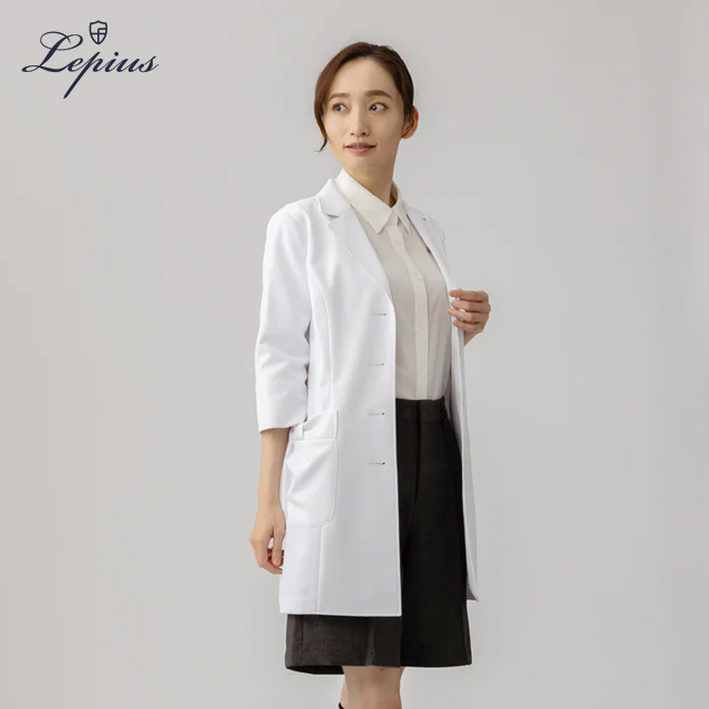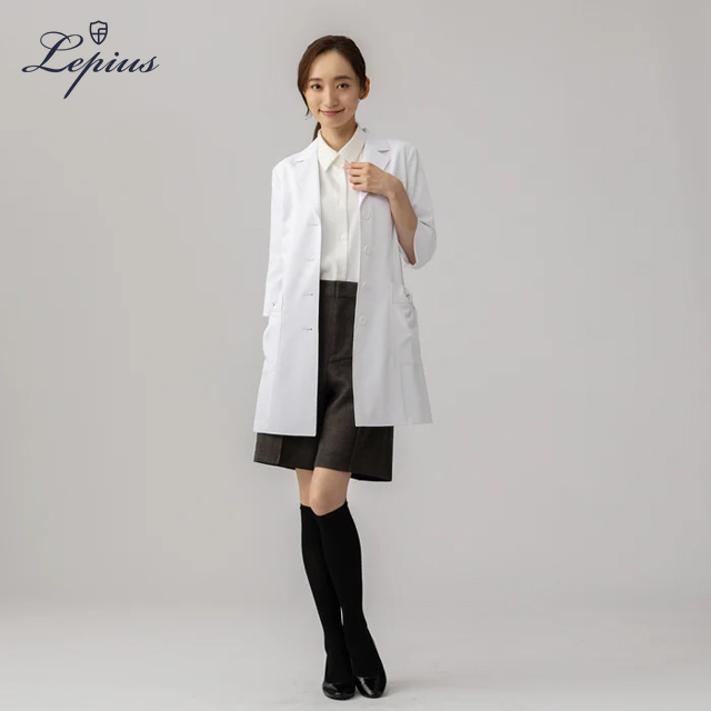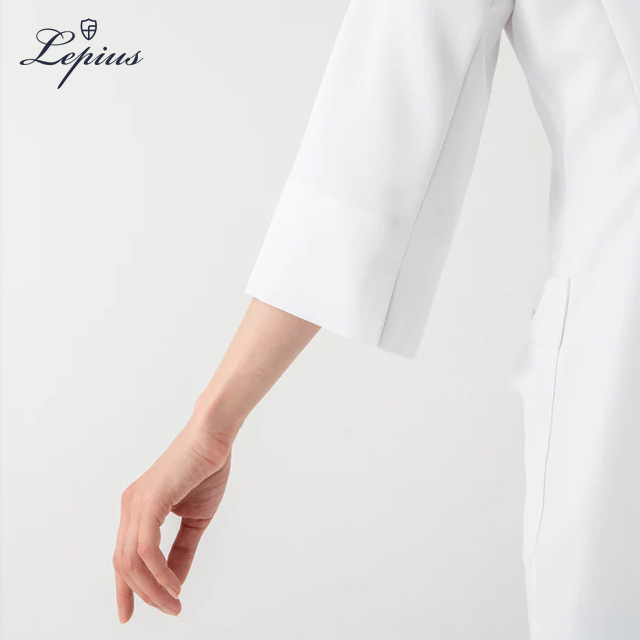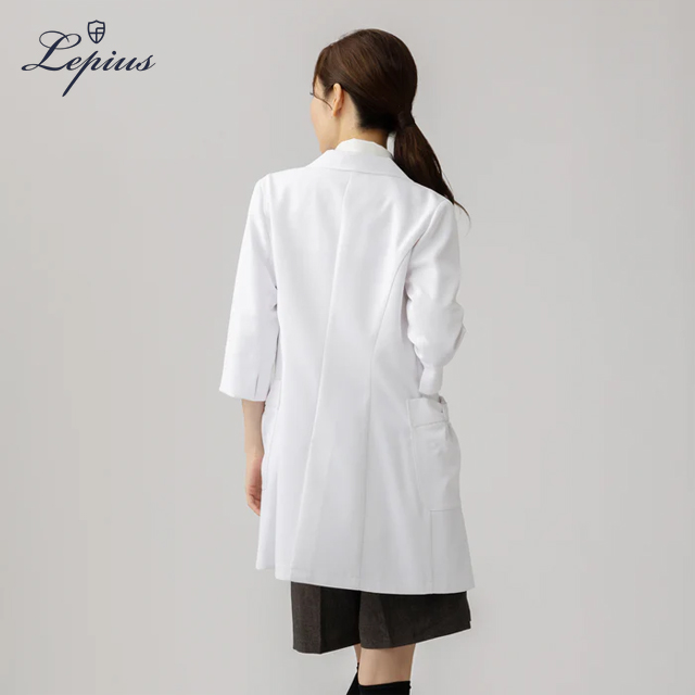 ウエストをナチュラルにシェイプしたシルエットは、女性を美しく見せる効果が抜群。フレアを抑えたセミAラインは大人の女性のための「かわいい」シルエット。ショート丈で、立ったり座ったりの動きがスムーズなため、処置で動くことが多い診療科目の先生にはおすすめのおしゃれ白衣です。