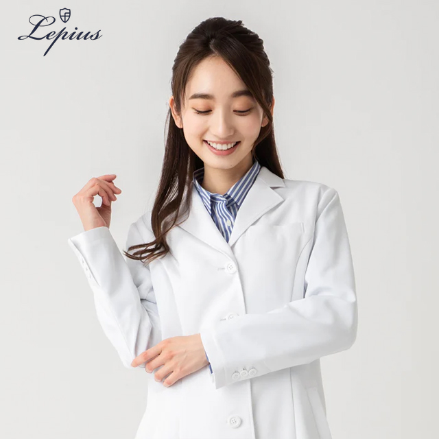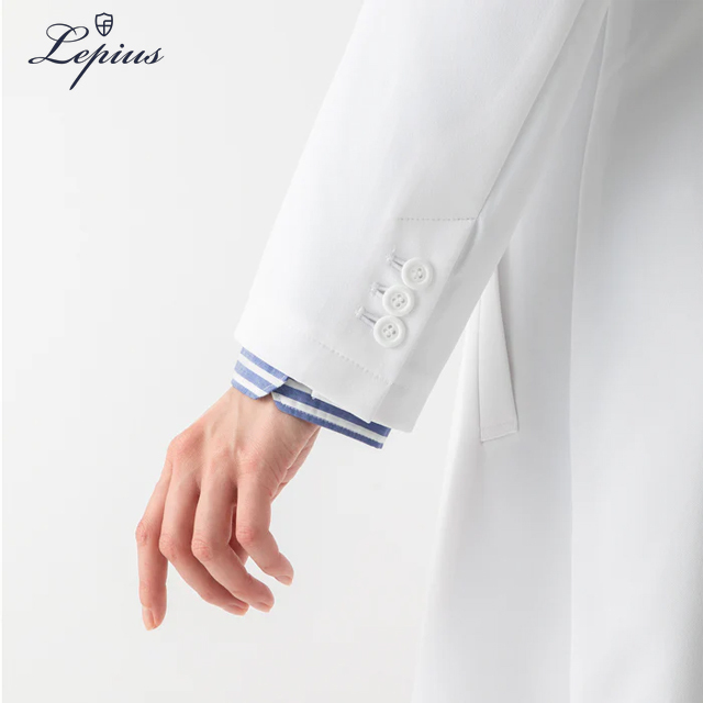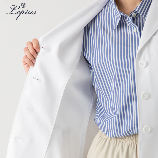 デザインはオーソドックスで、着心地がよく、動きやすく、美しいシルエットの白衣。デザイナーが手を加えながら、常により良いものへと日々進化を続けている、レピウスの自信作。