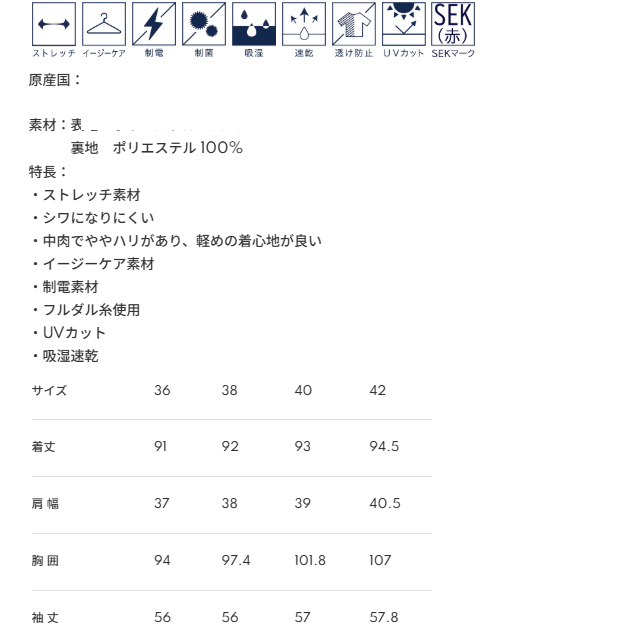 ●機能:ストレッチ イージーケア 制電 制菌 吸湿 速乾 透け防止 UVカット
