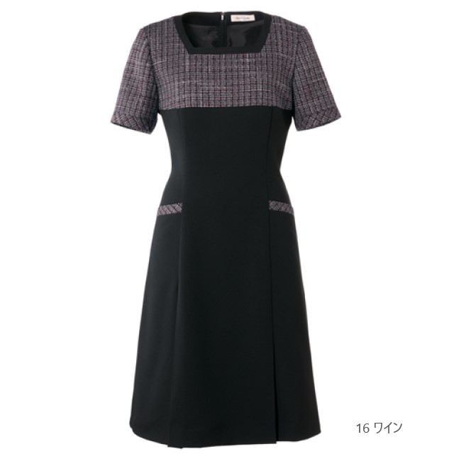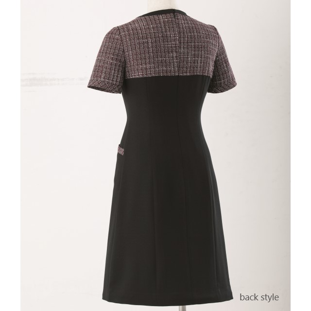 61430 en joie アンジョア ラ・ボーテ ワンピース ツイード 後ろファスナー 半袖 スタイルアップ ホームクリーニング 美容 医療 サロン エステ クリニック 受付 おもてなし カーディーラー ショールーム 企業受付 インフォメーション 事務服