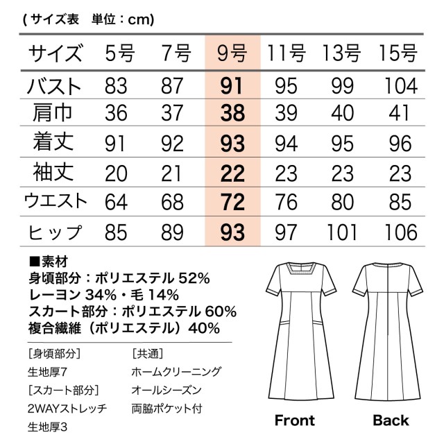 ●素材:[身頃部分]ポリエステル52%、レーヨン34%、毛14% [スカート部分]ポリエステル60%、複合繊維(ポリエステル)40%