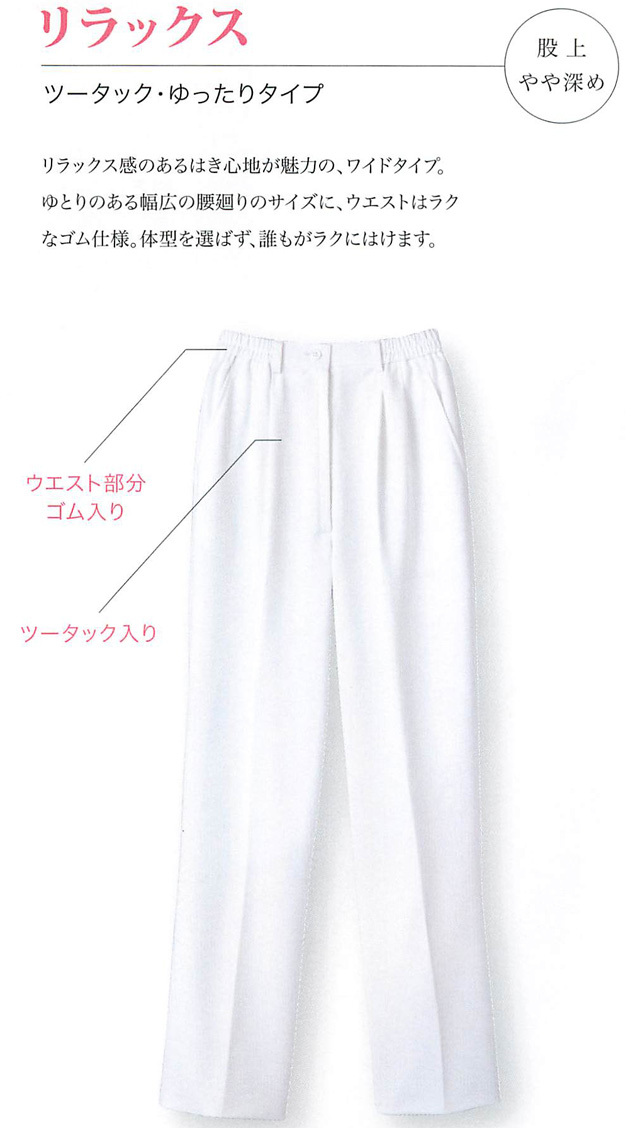 73-941 住商モンブラン ナースウェア パンツ 女性用 リラックス ゆったり ツータック 脇ゴム 制菌加工 透け防止 制電 防汚 エコ MONTBLANC 医療用 看護師 レディース レディス ズボン スラックス ゆったりパンツ