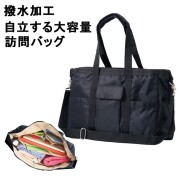 CR650 キラク 訪問バッグ 軽量 大容量 撥水加工 2way トートバッグ 肩掛け 斜め掛け すっきり収納 底鋲付き 多ポケット ブラック 黒 ナイロン 介護 ケア 施設 ヘルパーバッグ KIRAKU 訪問介護 訪問看護 夜勤 ナースバッグ