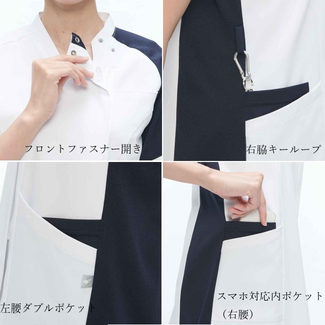 ハリ感のある織物素材でシルエットがきれいに保たれ、さらに身体のラインを拾いにくい安心の着用感です。