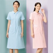 KZN325 ビアンカ バイ カゼン ナースウェア ワンピース 女性用 マーメイドライン 後ろファスナー 両腰ポケット 工業洗濯可 制菌加工 透け防止 制電 ストレッチ 防汚 KAZEN 医療用 看護師 エステ サロン クリニック 受付 レディス