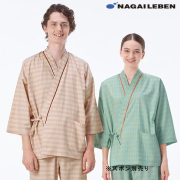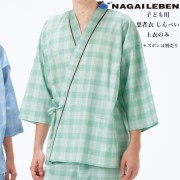 LG1471 ナガイレーベン 患者衣 じんべい型 男女兼用 チェック柄 吸水効果 業務用洗濯可 NAGAILEBEN 医療用 入院患者用 院内着 入院準備 検診 ユニセックス パジャマ 上衣 ジャケット 寝巻 甚平型 グリーン