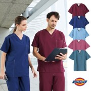 7084SC フォーク ディッキーズ ナースウェア スクラブ 男女兼用 半袖 透け防止 制電 吸汗 ストレッチ FOLK Dickies 医療用 看護師 医者 歯科医院 介護施設 接骨院 整骨院 動物病院 ユニセックス ジャケット 上衣 白衣 ブラック系 ネイビー系