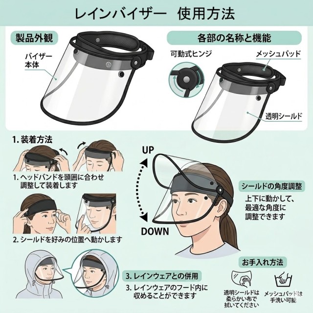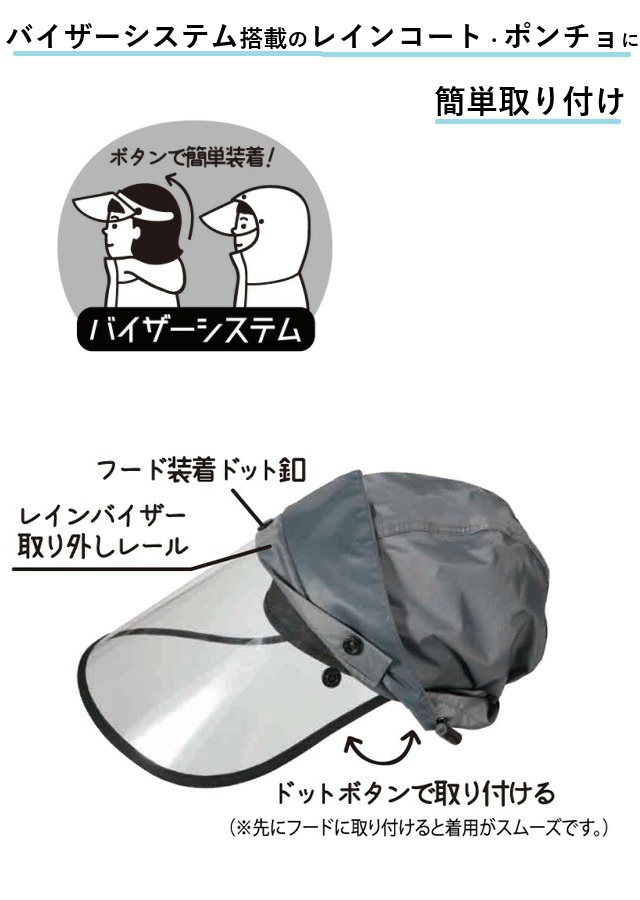 レインウェア Kajimeiku V002 レインバイザー 雨除け レイングッズ 便利グッズ レインコート 自転車 訪問介護 訪問看護 通学 通勤 サイクリング V-002