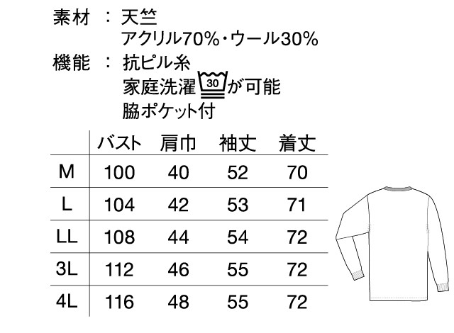 ●機能:抗ピル/家庭洗濯可/脇ポケット付き